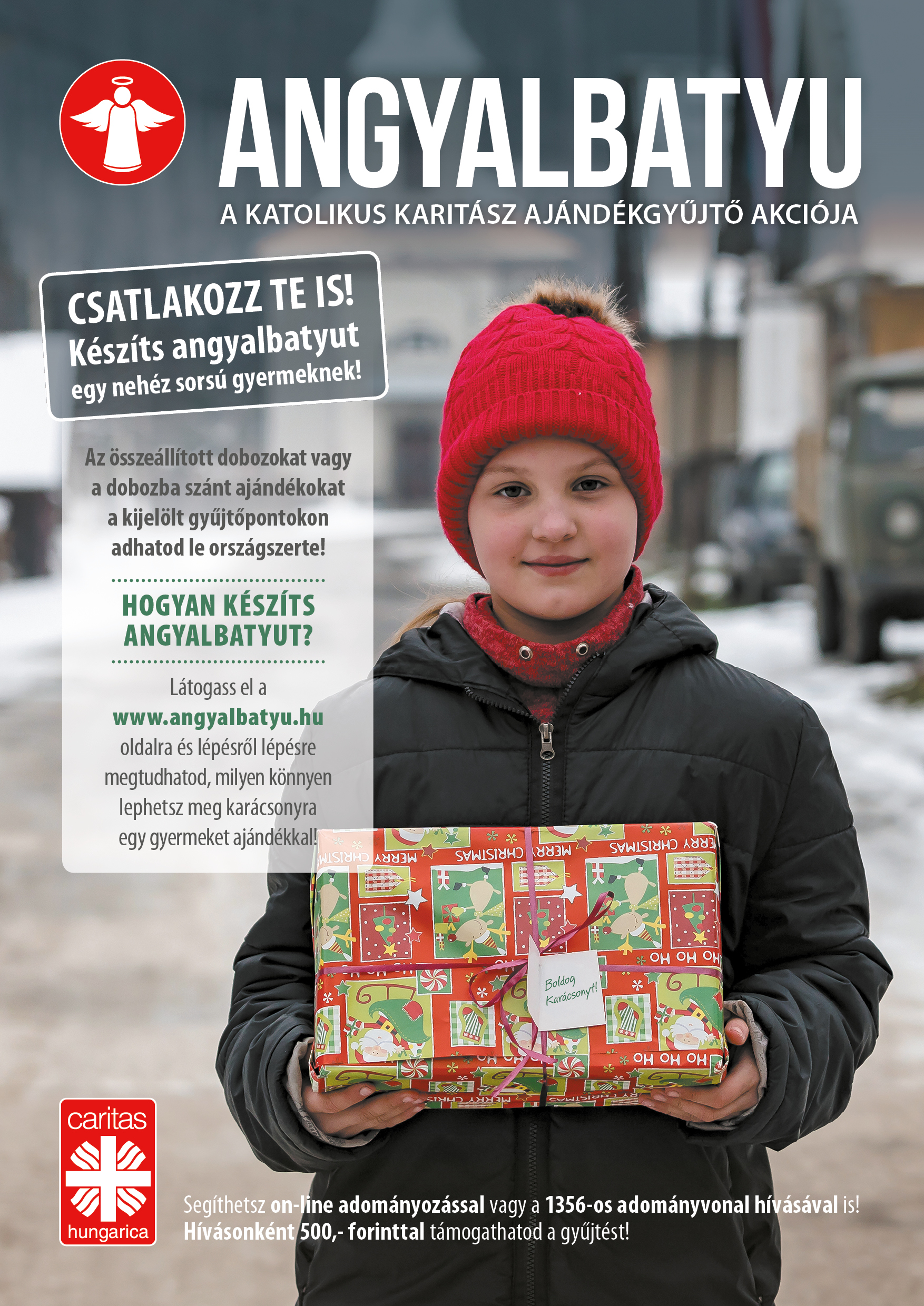 „Angyalbatyu” karitatív adománygyűjtő akciót szervezünk hátrányos helyzetű gyermekek javára a Pécsi Egyházmegyei Katolikus Karitász közreműködésével. A cipősdobozokba csomagolt ajándékokat minden hétköznap 7:20-7:40 között várjuk a földszint 4. teremben december 15-ig. A 10. B osztály tanulói juttatják el az angyalbatyukat a gyermekeknek.