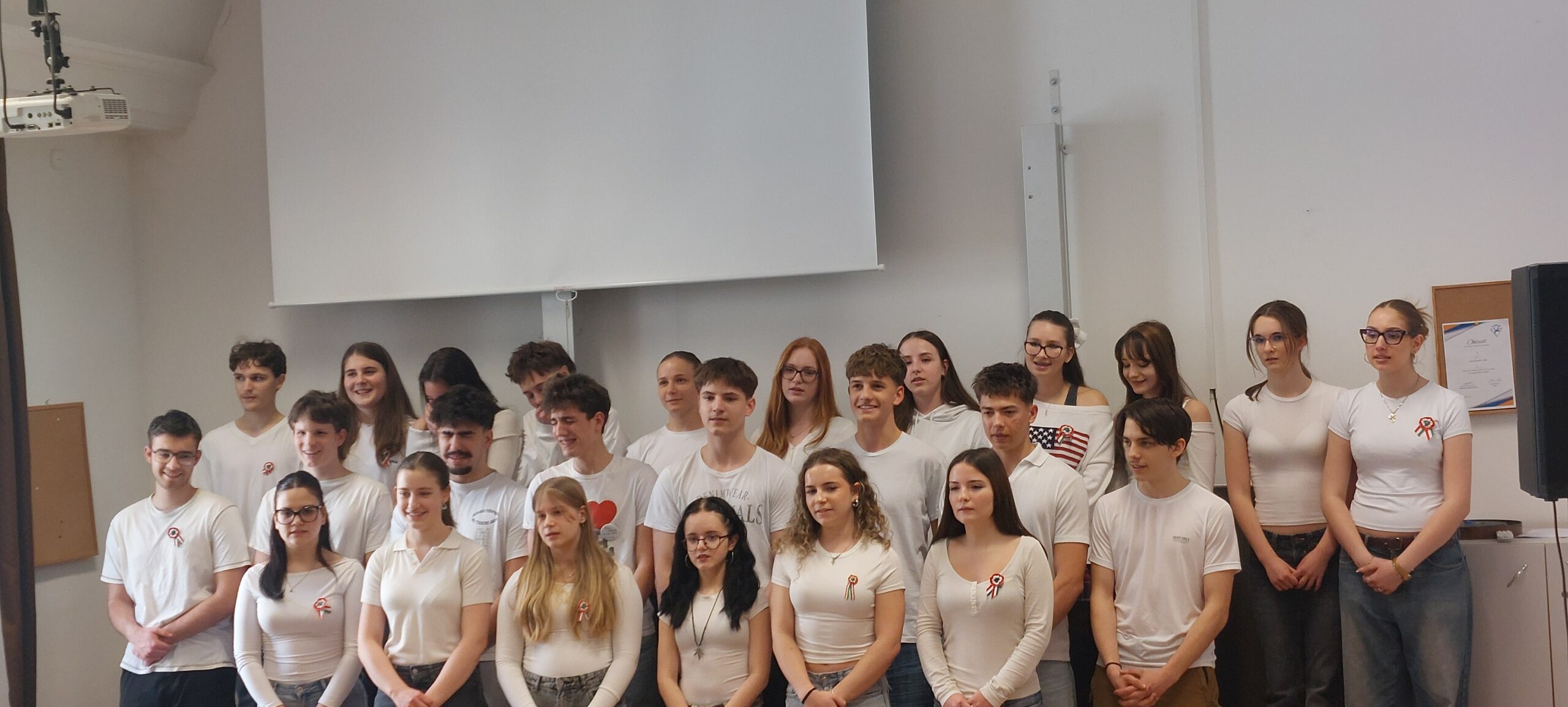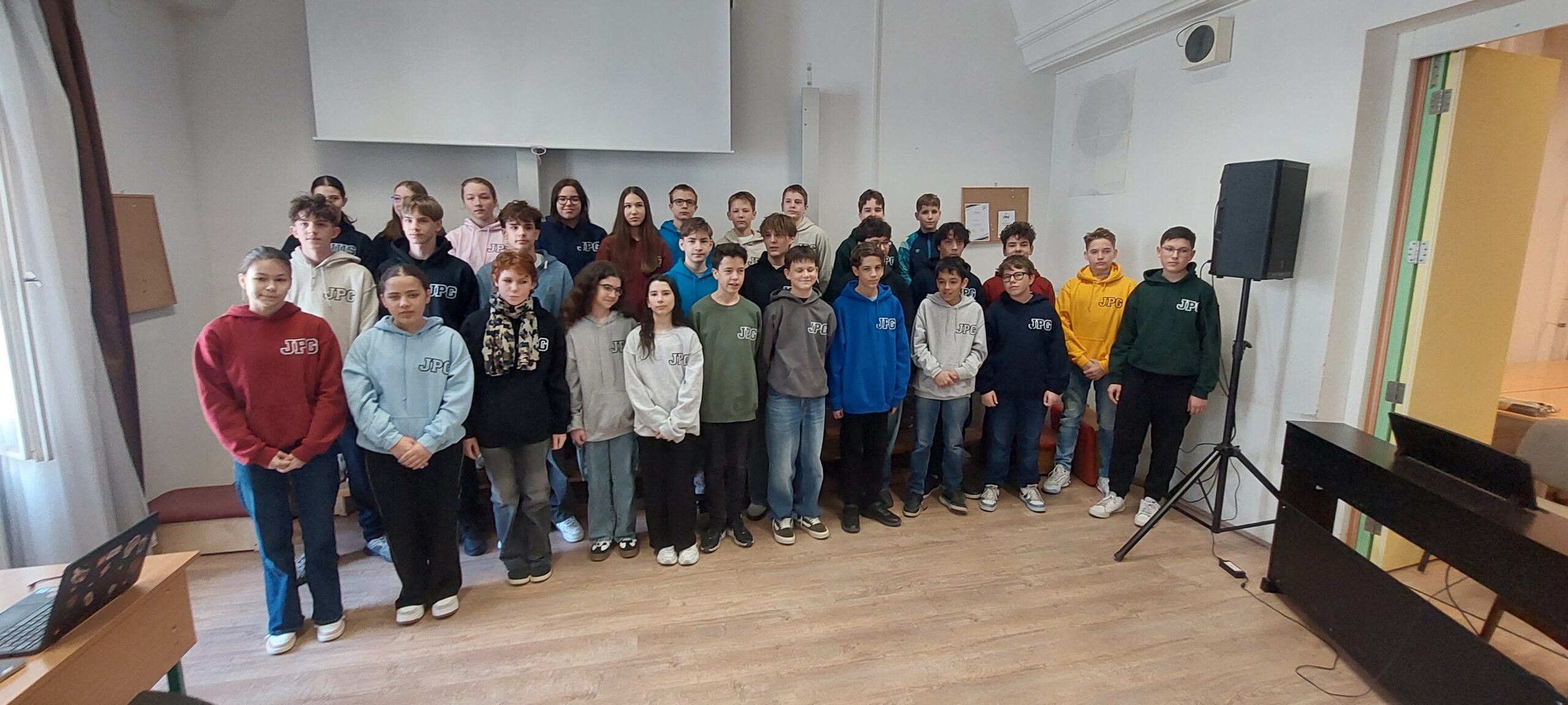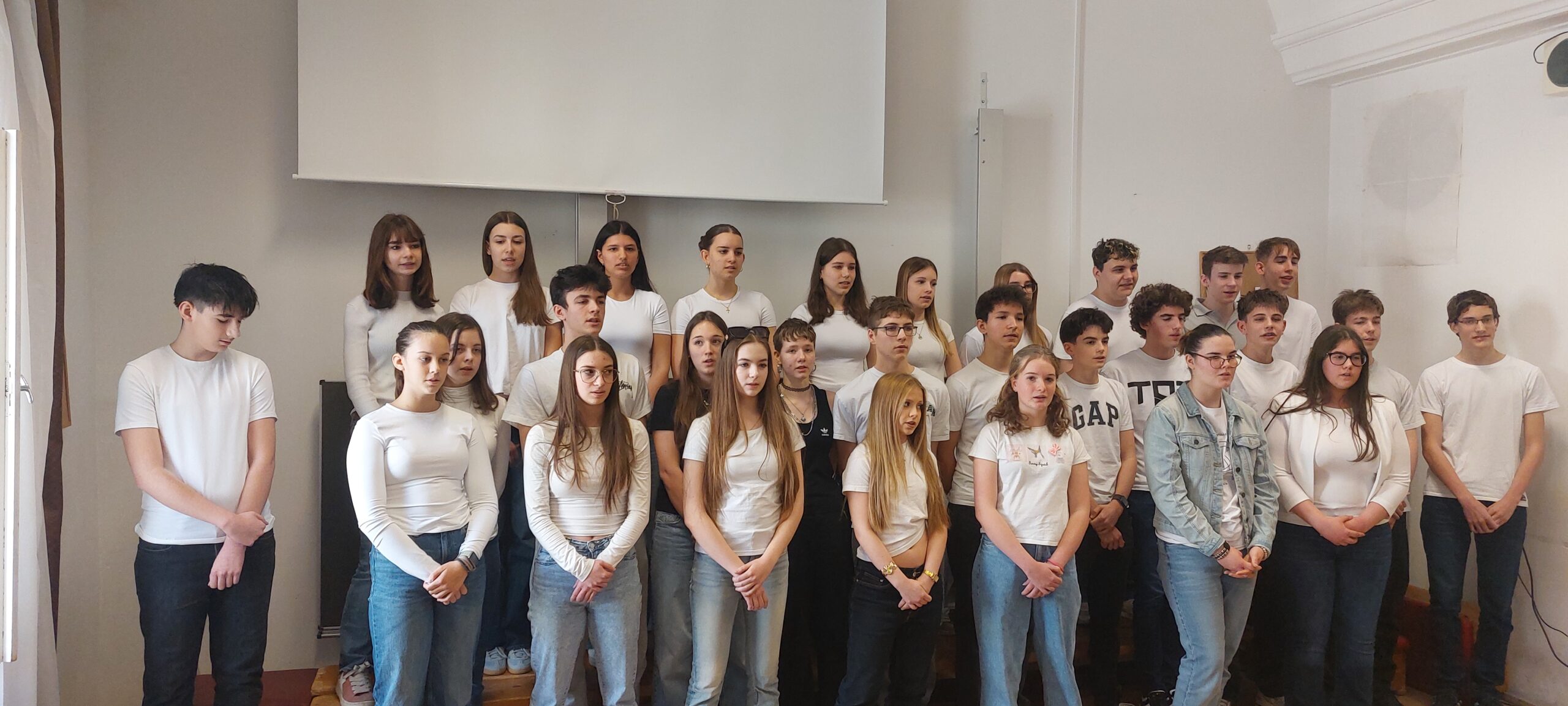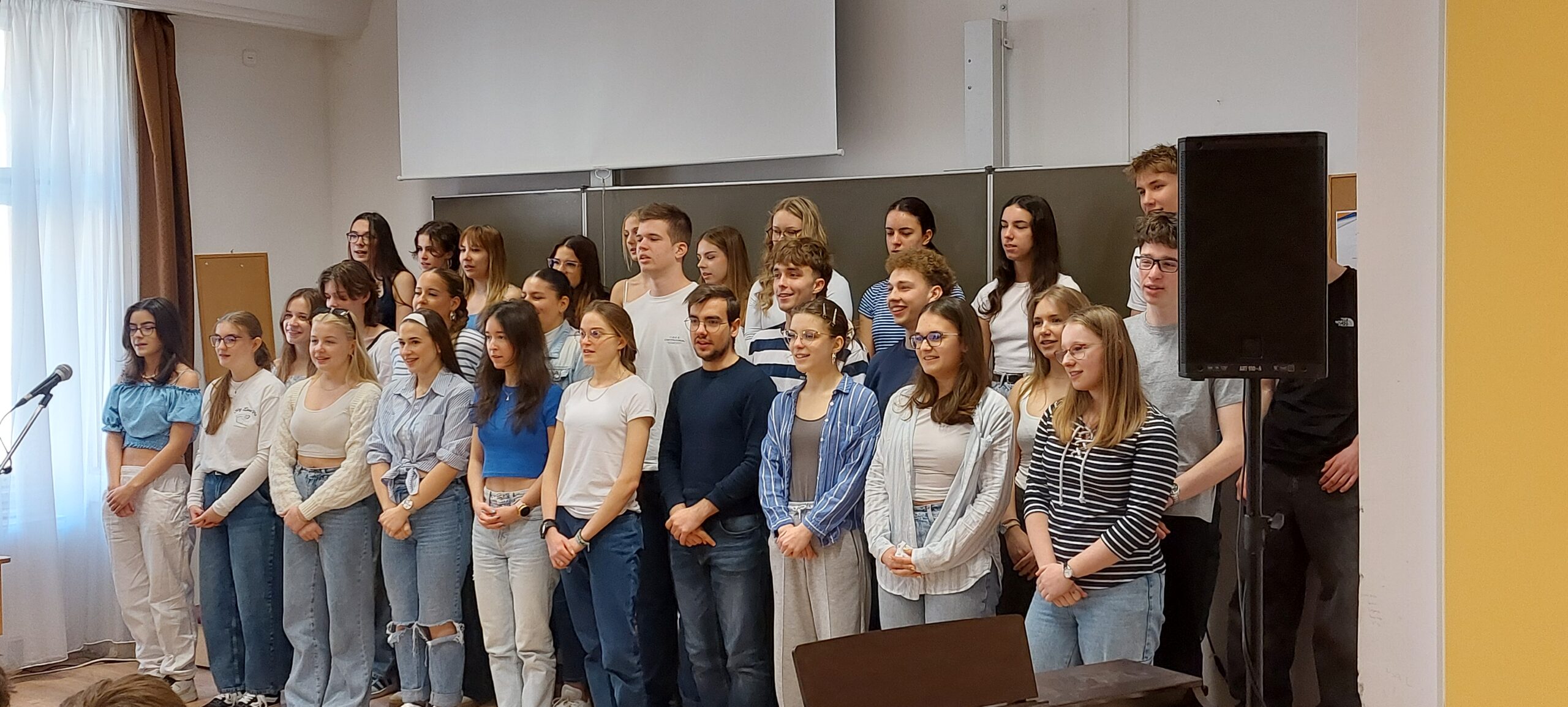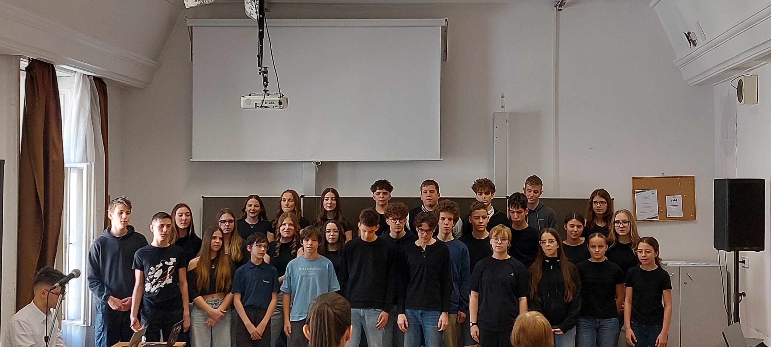 Március 11-én ismét felcsendült az ének a Dísztermünkben. Az immár hagyományos rendezvényünkön az osztályaink egy-egy népdalcsokrot és egy szabadon választott dalt mutattak be. A közös éneklés örömét  többen hangszeres kísérettel és kreatív koreográfiával fokozták. A Dr. Kurucz Réka és Harmat Zóra tanárnők alkotta zsűri a produkciók értékelésén túl tanácsokat is adott a következő évi felkészüléshez.