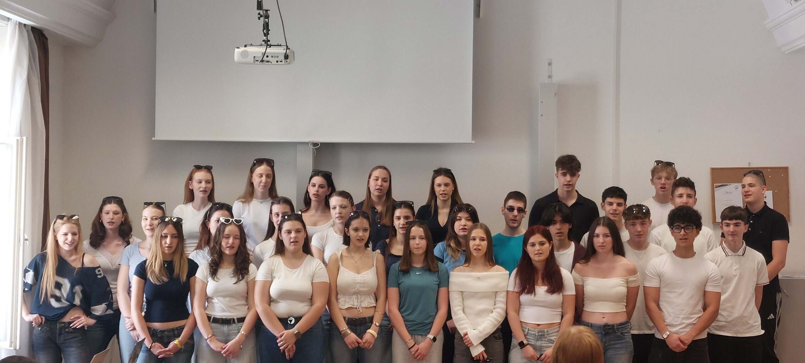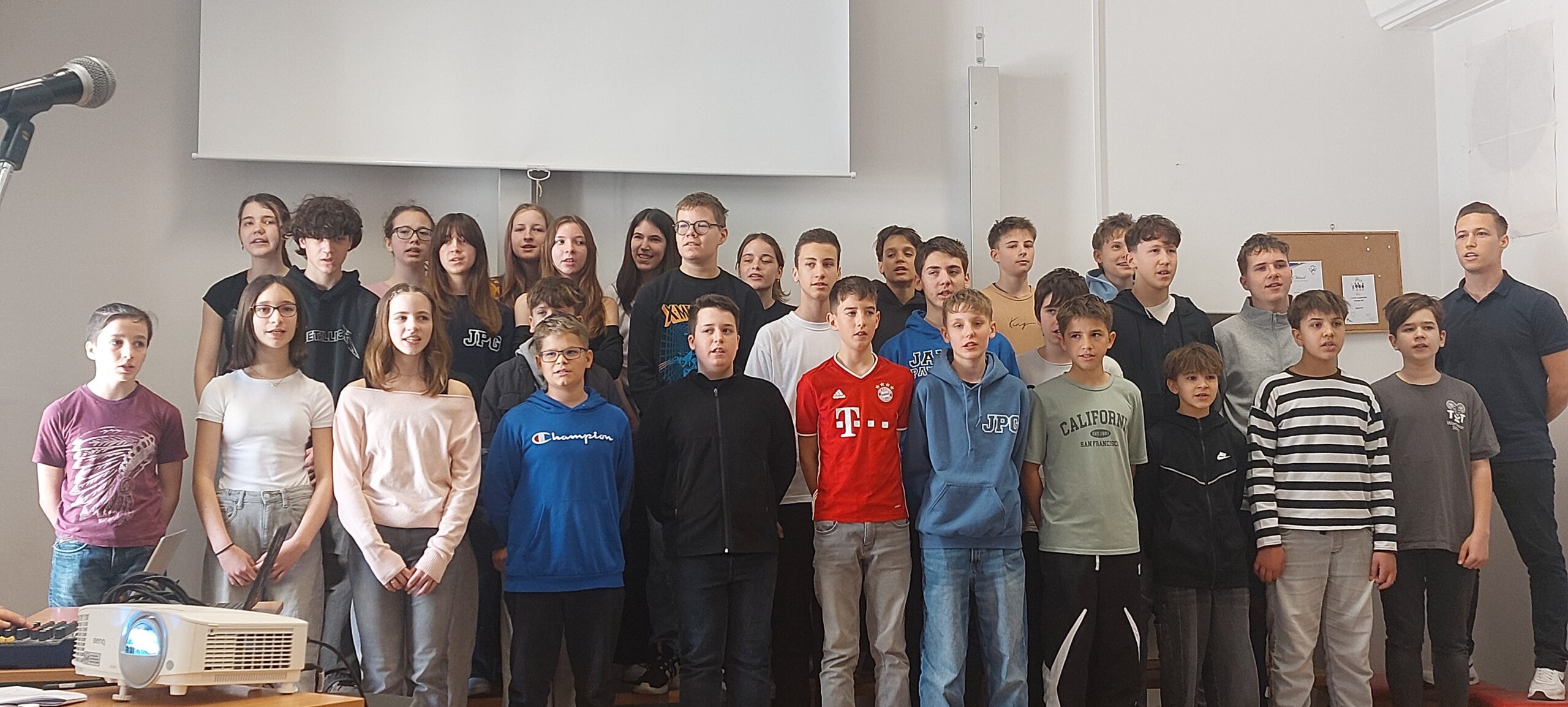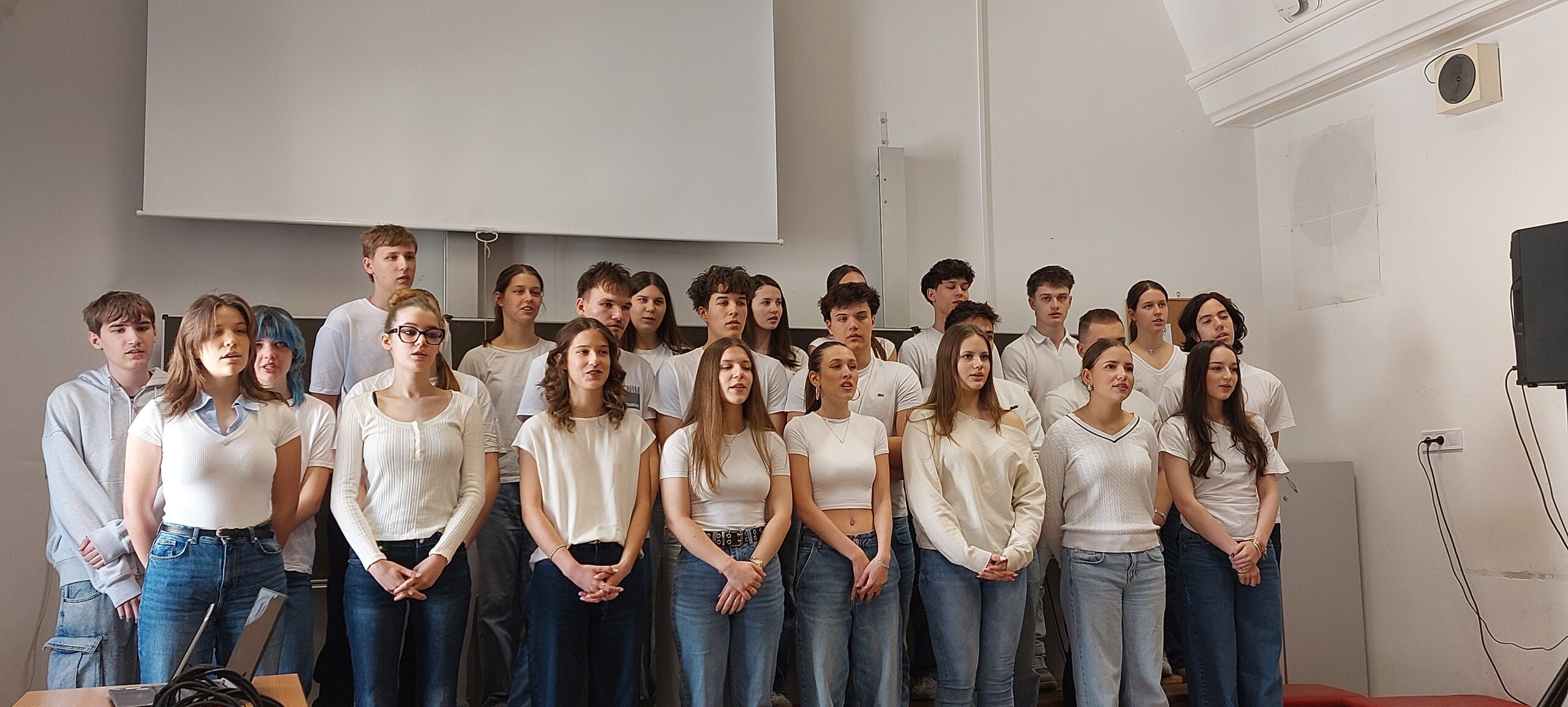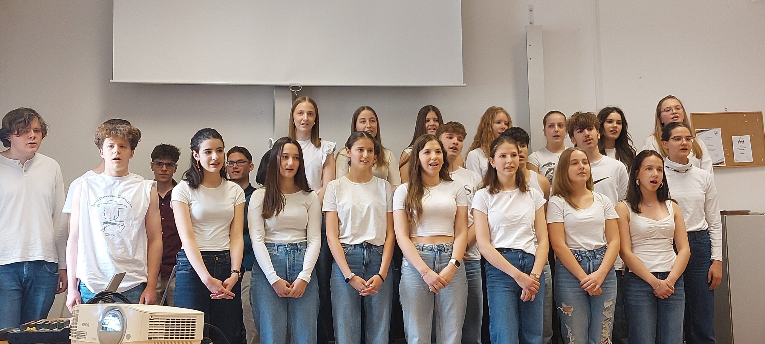 Március 11-én ismét felcsendült az ének a Dísztermünkben. Az immár hagyományos rendezvényünkön az osztályaink egy-egy népdalcsokrot és egy szabadon választott dalt mutattak be. A közös éneklés örömét  többen hangszeres kísérettel és kreatív koreográfiával fokozták. A Dr. Kurucz Réka és Harmat Zóra tanárnők alkotta zsűri a produkciók értékelésén túl tanácsokat is adott a következő évi felkészüléshez.
