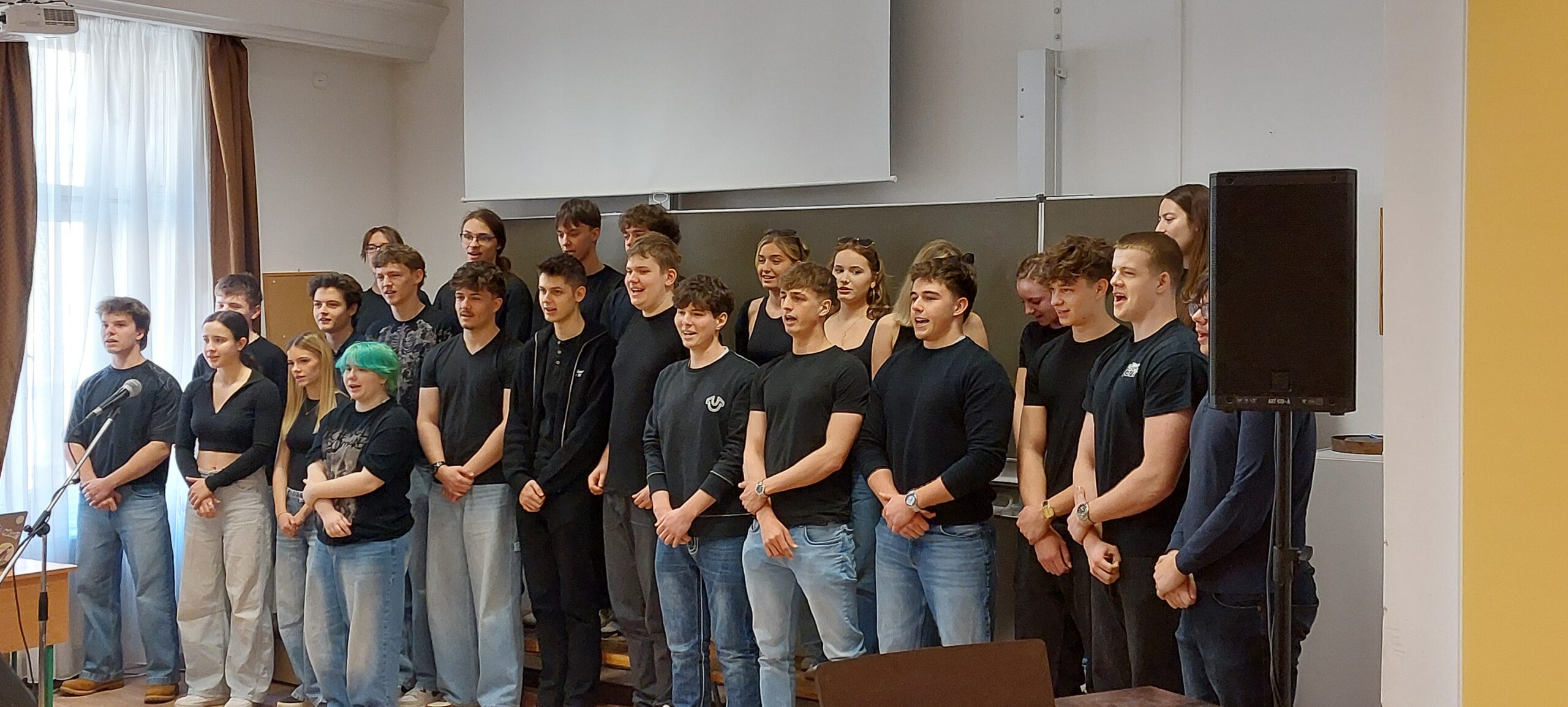 A fiúk lelkes énekléséért: —  a 12. C együttese